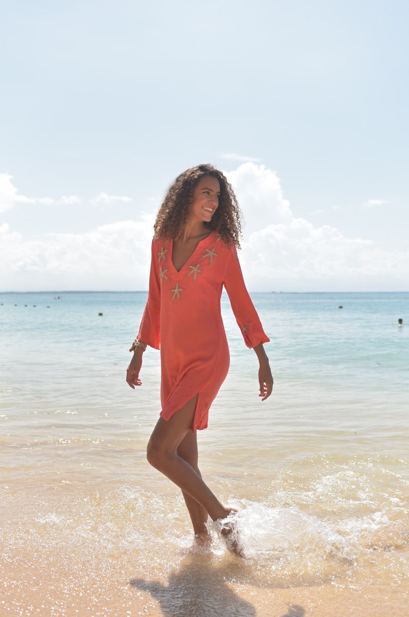 Tunic Starfish is one of Hot Lava’s iconic designs, a breathtaking piece that you can’t miss in your summer wardrobe. Adorned with handmade starfish shaped beading crafted with love in Bali. The fabric is a luxurious crinkle rayon voile, offering a lightweight and airy feel perfect for warm weather. Side slits add a touch of elegance and ease of movement, while an extra starfish beading on the back completes the look. Tunic Starfish is a true statement piece, embodying the essence of summer luxury. Available in many more lovable colour ways.